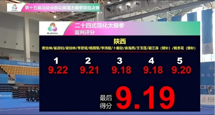 此次参赛队伍由莲湖区武术协会组建,代表陕西省出征全运赛场,为家乡争光的同时,也有力推动了陕西省太极拳运动的发展。这不仅是陕西省代表队在本届全运会上斩获的首枚金牌,更是群众体育太极拳项目诞生的首枚金牌。
